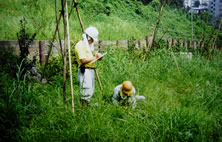 自然環境について、造成予定地の地形、元の環境、周辺の植生と生息する野生動物を調べて、設計の基礎データを収集します。