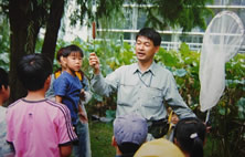 自然観察会をおこなって、地元地域の自然の大切さや生き物についてく理解してもらいます。