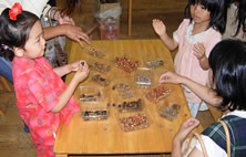 幼稚園でどんぐりや草木の葉っぱを使った草木遊びを指導しました。